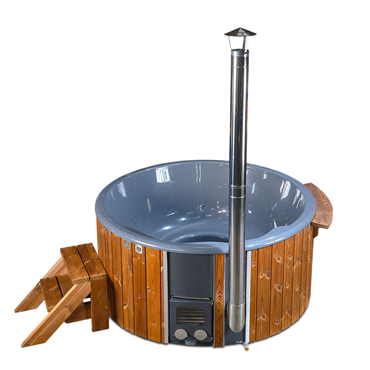 ”Vores vildmarksbade er af meget høj kvalitet og bygget i vedligeholdelsesfri materialer. Og netop for at gøre det nemmere for kunden, har vi indbygget en brændefyret integreret ovn, som kan tåle klor – så behøver man ikke skifte vandet med få dages mellemrum. Derudover er der mulighed for at få bygget ekstra tilbehør på, såsom undervands -belysning, filtre og luftmassage”, fortæller Jens Hovgaard.